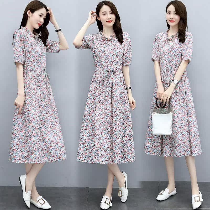 棉麻连衣裙女装长袖2021年新款早春收腰中长款棉麻碎花裙子款潮热门设计联盟服务商
